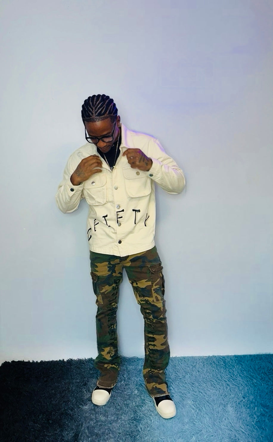 Men’s beige distressed 2fifty2 brand jean jacket